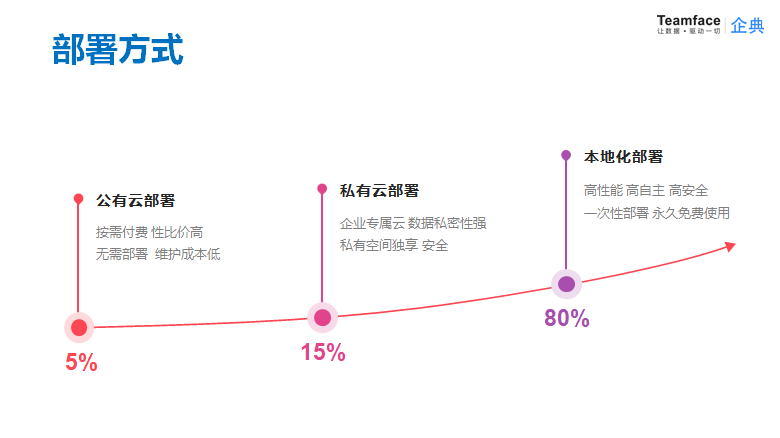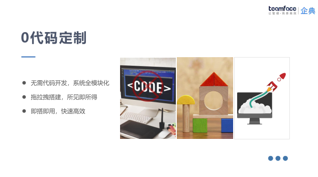 2020-12-30 查看详情Teamface企典的CEO杨建说,基于无代码开发,Teamface企典可为企业应用研发提效500%。在Teamface企典开发的应用,具备"数据原生"特性,能打通集团的全部系统,集于一个账号和平台
