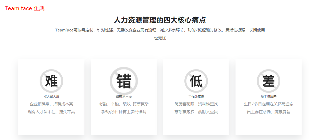 Teamface HR人力资源管理系统,还可定制更多的HR人力资源管理应用模块,只要您提出需求,我们就能定制,详情可在线咨询!