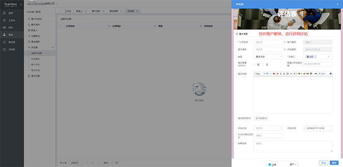 2019-07-10 查看详情企典CRM客户关系管理系统是具有项目功能模块。如果新建立一个项目时,这个项目就会具有项目的名称、关联对象、时间、进度、类型、预算等信息,而且多个项目之间可以有管理,都会记录在内,那么可以使用项目的关联和项目的优先级来实施项目管理。