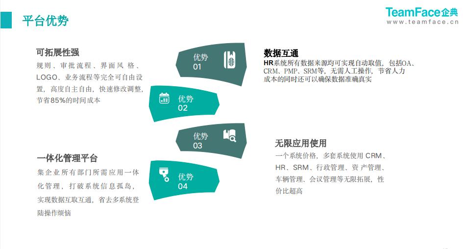 企典软件自带六大核心应用(OKR、HR、OA、CRM、PMP、SRM),10大常用应用,100多个市场应用于一体,一套系统价格=N套系统使用。